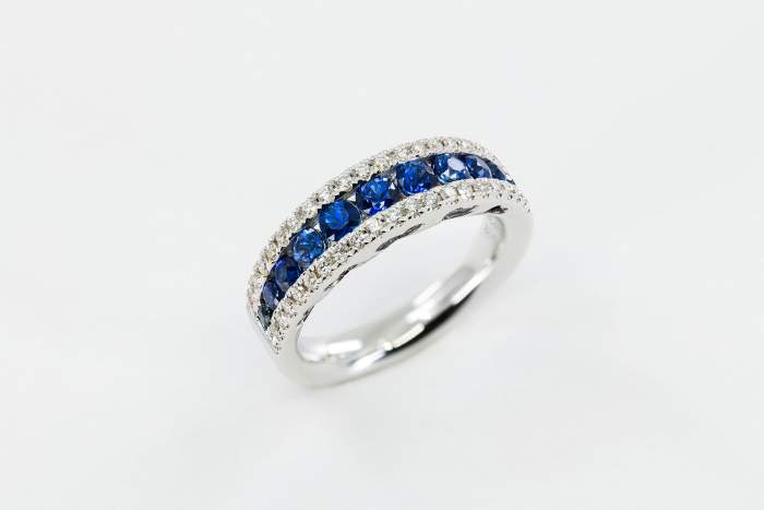 Anello a fascia zaffiri white Prestige – Pietre preziose, oro bianco e pavè di diamanti!