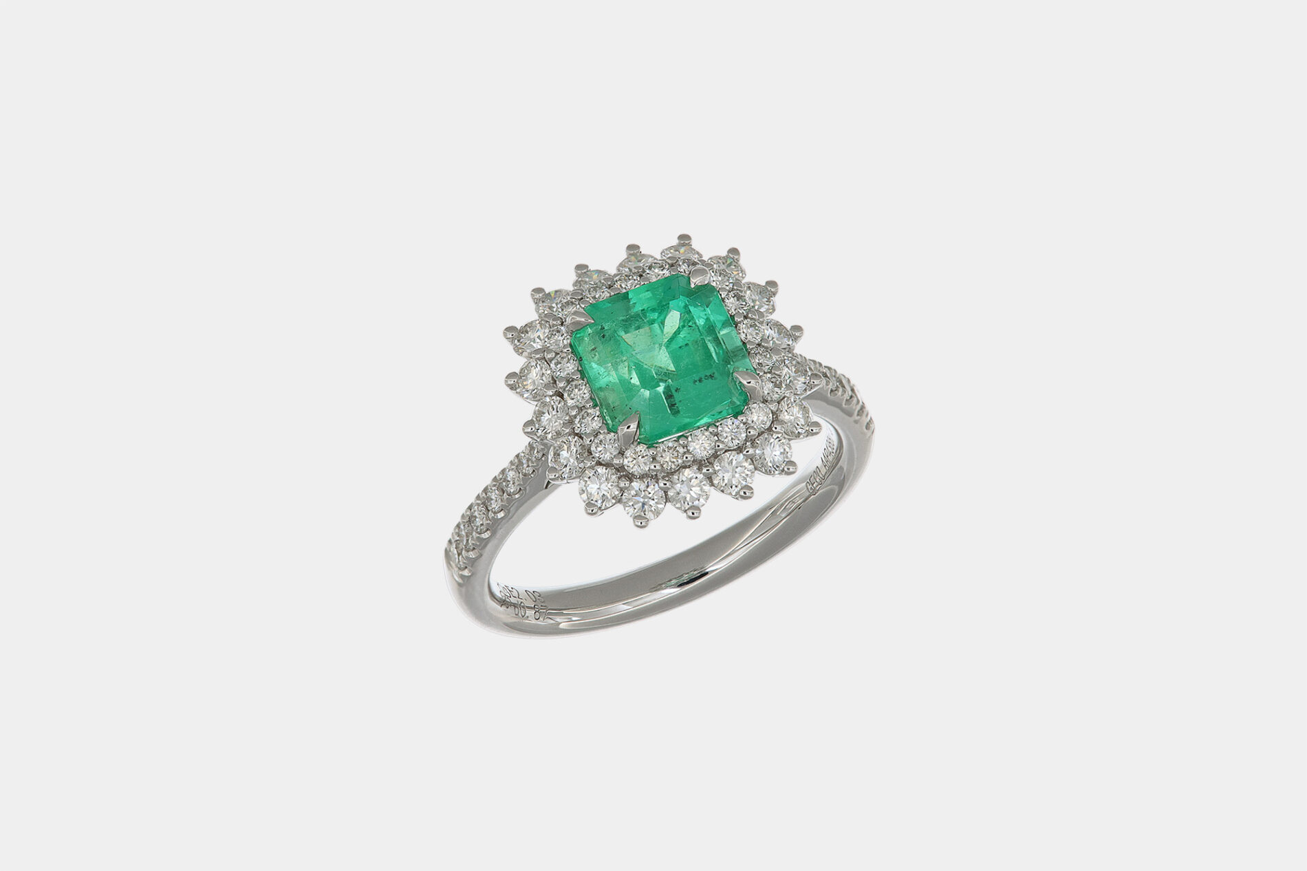 Al centro di questo anello è incastonato appunto uno smeraldo colombiano taglio “ottagonale” certificato dal laboratorio svizzero di gemmologia “GFCO”. Una gemma che è la vera protagonista del gioiello, sia per la sua bellezza che per le sue caratteristiche uniche.