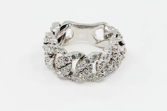 Anello groumette oro bianco Prestige è uno dei gioielli della nostra linea più importante. Conosciuto anche come “cuban link chain”, questo gioiello è tra le realizzazioni più complesse ed affascinanti della gioielleria mondiale.