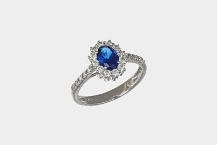 Anello oro bianco rosetta con zircone blu – Acquisto sicuro e garantito