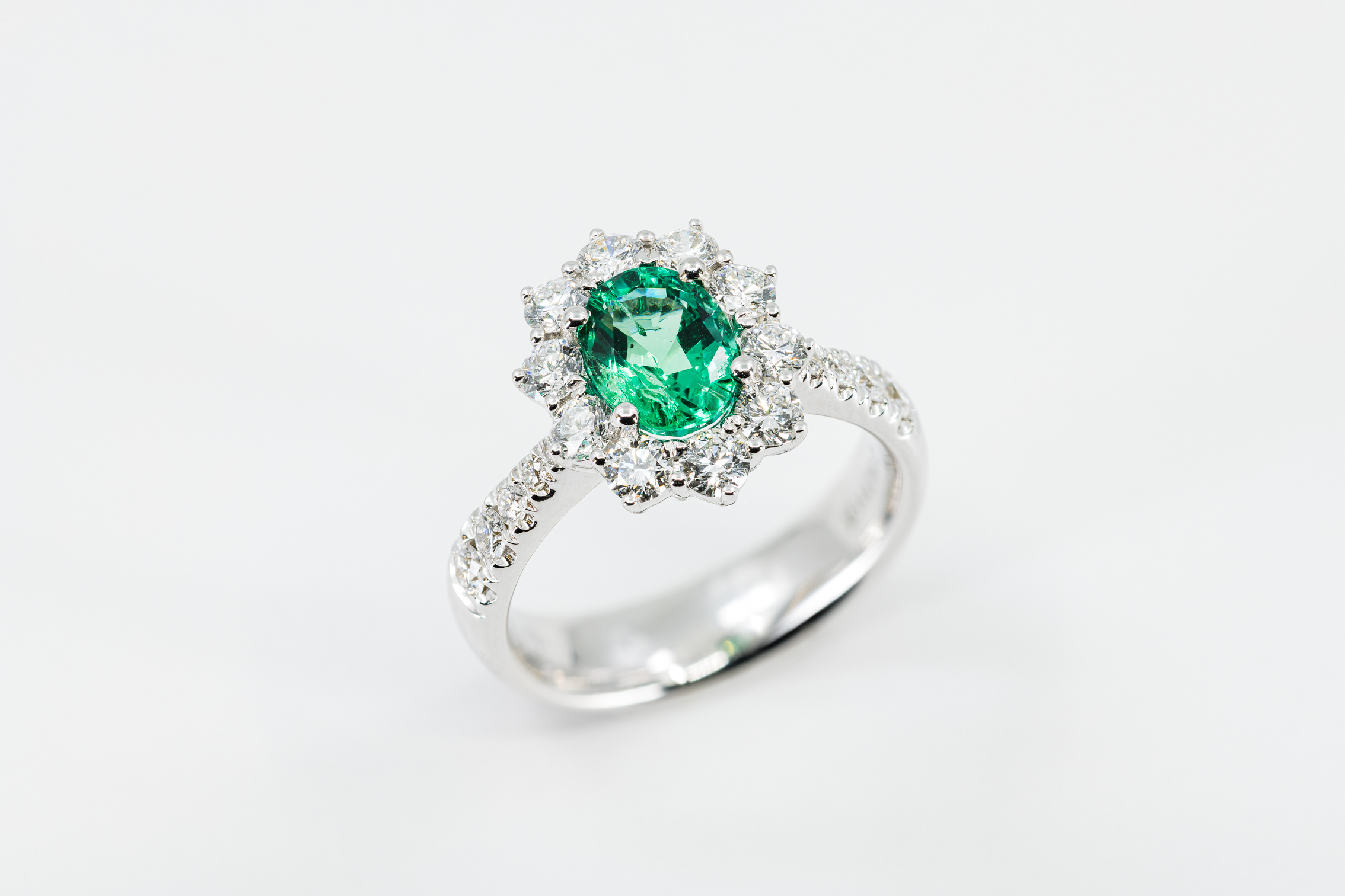 Anello pavé smeraldo Sunflower Nature è un gioiello ispirato alle forme ed ai colori della natura. Un anello in oro bianco su cui spicca un sontuoso smeraldo taglio ovale. Un gioiello dalle caratteristiche uniche ed inconfondibili. Un’opera della Gioielleria Casavola di Noci (BA).