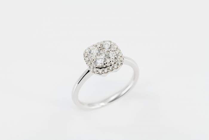 Anello quadrato Invisible white è uno dei gioielli più sfiziosi della Gioielleria Casavola di Noci (BA). Un anello in oro bianco e diamanti dal design unico ed inconfondibile.