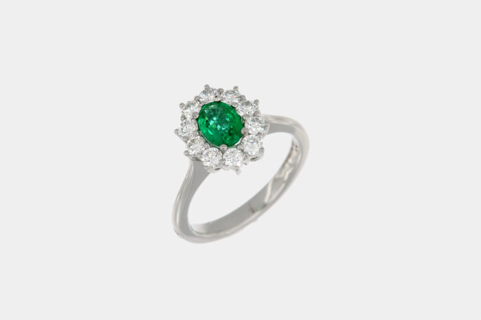 Anello rosetta smeraldo Zambia 0.59 ct Prestige White – Acquisto sicuro e garantito