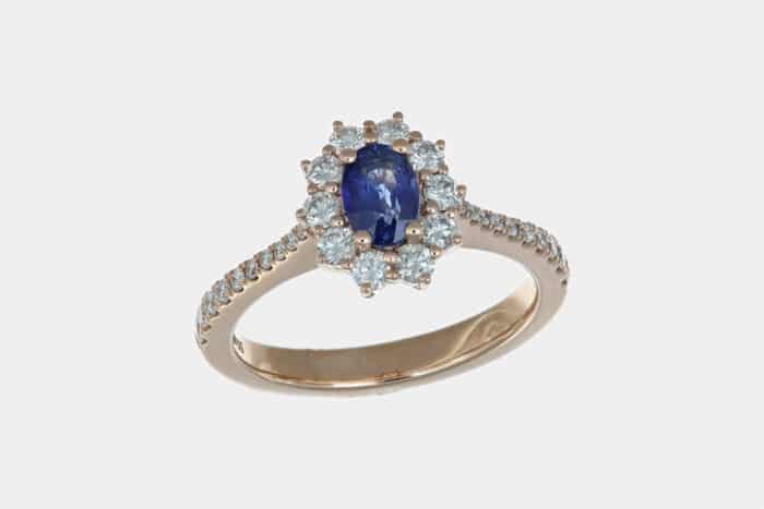 Anello rosetta zaffiro 0.80 ct Rosé Prestige – Sfavillanti emozioni dalle tonalità di blu