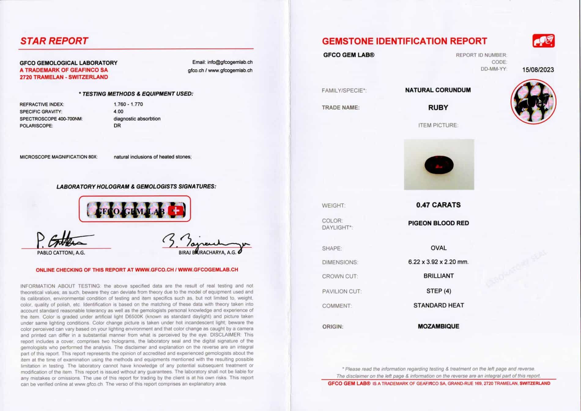 Il delizioso anello con rubino da 0.47 ct taglio “ovale” Gerbera della collezione Nature è sicuramente un acquisto garantito. Ogni singolo gioiello è infatti venduto con regolare certificato di autenticità firmato da Dario e Fabio Casavola. Inoltre, ogni aspetto della vendita è super controllato.