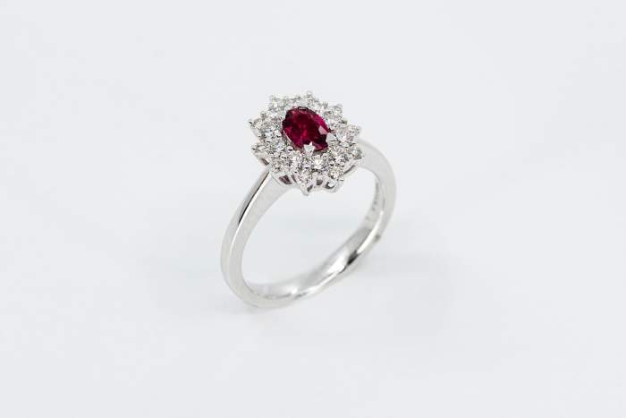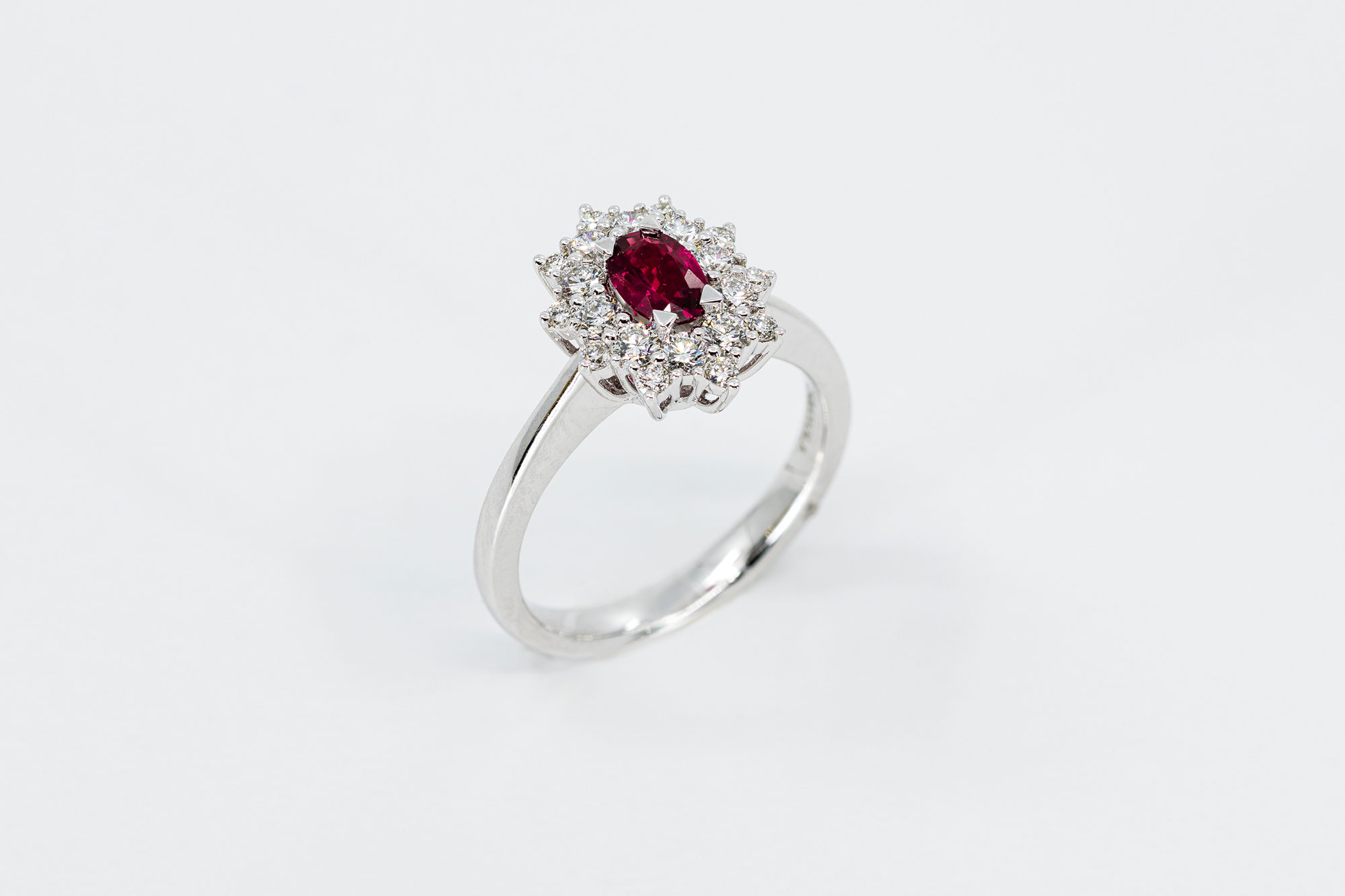 Anello rubino Star Anise Nature è un gioiello ispirato alle forme ed ai colori della natura. Un anello in oro bianco su cui spicca un bellissimo rubino taglio ovale con pavé di diamanti. Un gioiello dalle caratteristiche uniche ed inconfondibili. Un’opera della Gioielleria Casavola di Noci (BA).