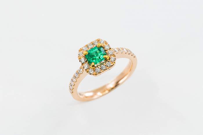 In questo caso, ad abbellire l’anello ci pensa un coloratissimo smeraldo colombiano taglio “quadrato”. Ed essendo una pietra certificata, si ha la sicurezza di avere tra le mani una gemma di altissima qualità.
