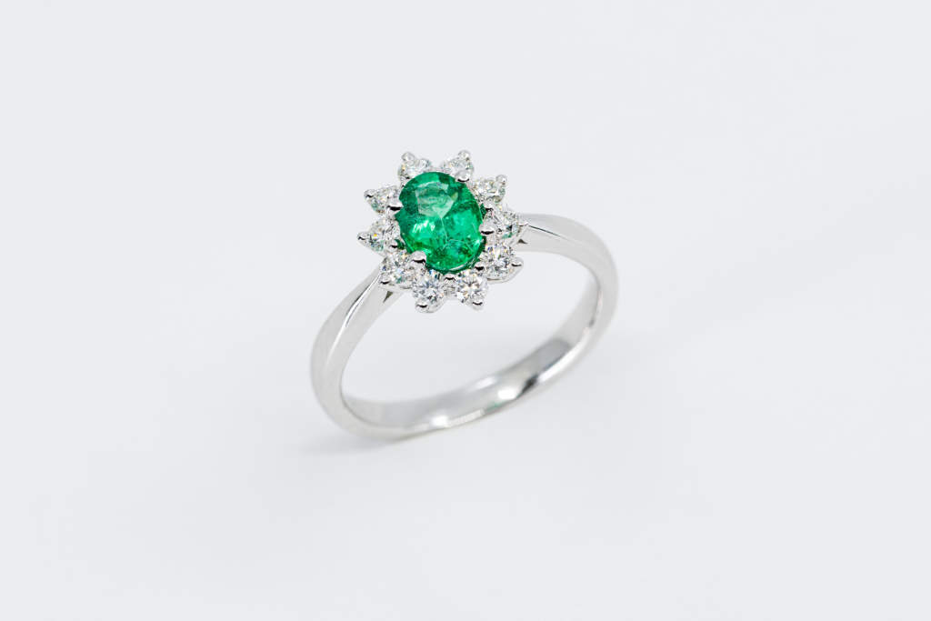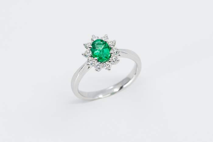 Anello smeraldo Sunflower Nature è un gioiello ispirato alle forme ed ai colori della natura. Un anello in oro bianco su cui spicca un bellissimo smeraldo taglio ovale. Un gioiello dalle caratteristiche uniche ed inconfondibili. Un’opera della Gioielleria Casavola di Noci (BA).
