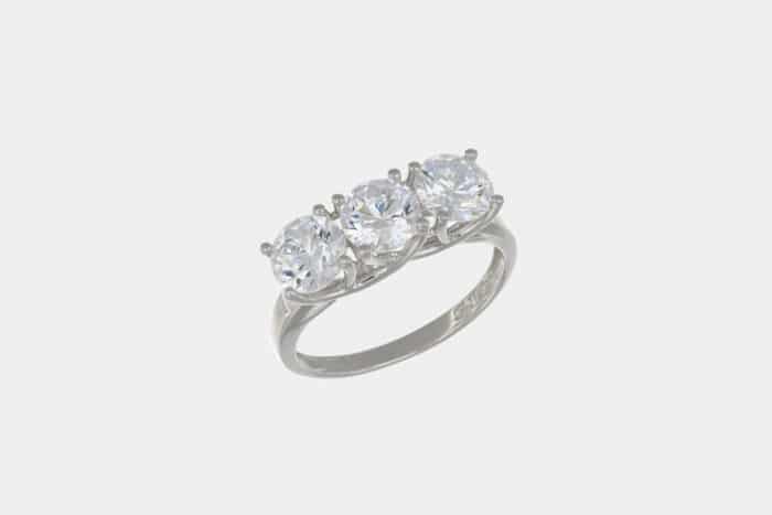 Anello trilogy oro bianco 3.80 gr è un gioiello di oreficeria dalla montatura classica ed intramontabile. Una bellissima idea regalo per le occasioni più romantiche, qui realizzata in oro bianco con tre zirconi bianchi/trasparenti taglio “tondo brillante” al centro della montatura.