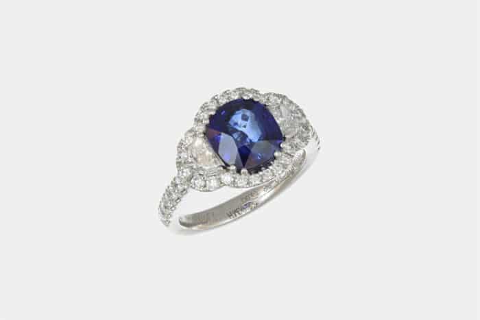 Anello zaffiro cushion con diamanti mezzaluna White Prestige – Acquisto sicuro e garantito