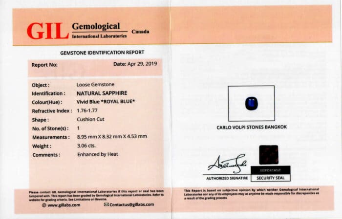 Il bellissimo anello zaffiro cushion con diamanti mezzaluna White Prestige è sicuramente un acquisto garantito. Ogni singolo gioiello è infatti venduto con regolare certificato di autenticità firmato da Dario e Fabio Casavola. Inoltre, ogni aspetto della vendita è super controllato.