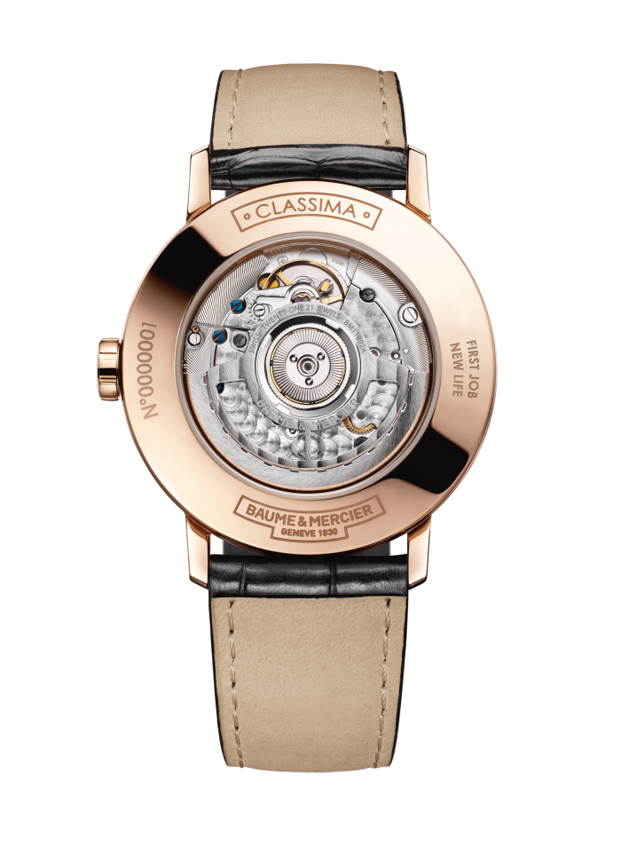 Nel “cuore” del Baume et Mercier Classima 10037 batte il famoso calibro BM 11892A, movimento automatico derivato dall’ETA 2892-A2. Dotato di datario, il calibro ha una riserva di carica dichiarata di ben 42 ore, ed è interamente “Made in Swiss”. Movimento che potete vedere in tutta la sua bellezza grazie al fondello in vetro zaffiro della cassa.