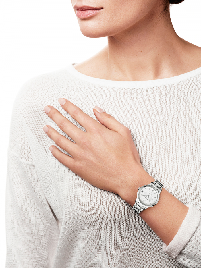 Sportivo ma elegante è infine il bracciale in acciaio INOX chiusura tripla pieghevole con fermaglio di sicurezza montato sul Baume et Mercier Classima Lady 10267, un dettaglio che piacerà moltissimo a tutte le donne che non amano indossare cinturini in pelle.