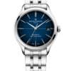 Il vetro superiore dell’orologio è ovviamente in vetro zaffiro, e mostra un scintillante quadrante “gradient blue” con indici rivettati e lancette placcate rodio.