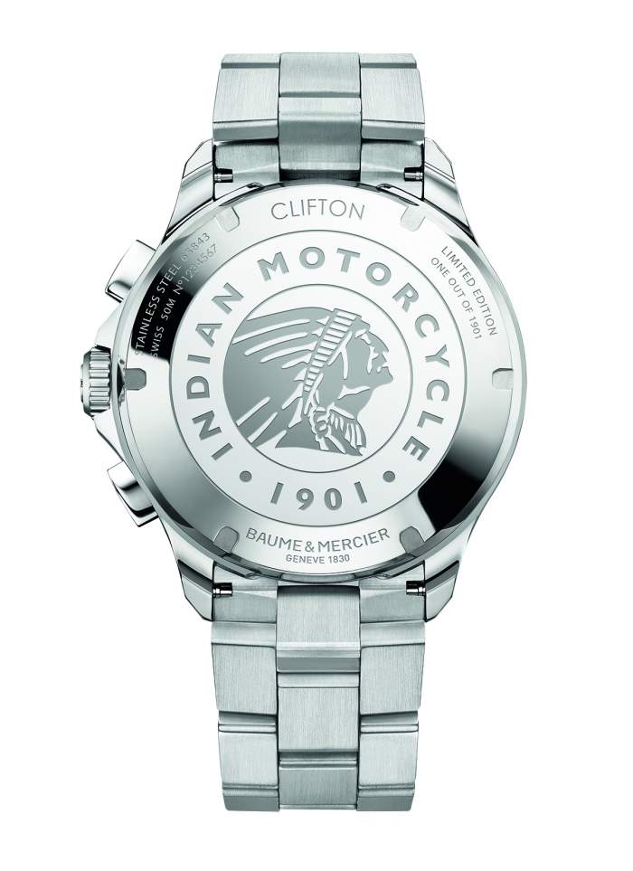 La Baume et Mercier, che ha saputo riconoscere il valore di questo pezzo della storia americana su due ruote, ha deciso di realizzare un orologio che possa omaggiare a dovere la gloriosa Indian Chief. E grazie all’abilità dei maestri orologiai di Baume et Mercier, questo sogno è diventato finalmente realtà.