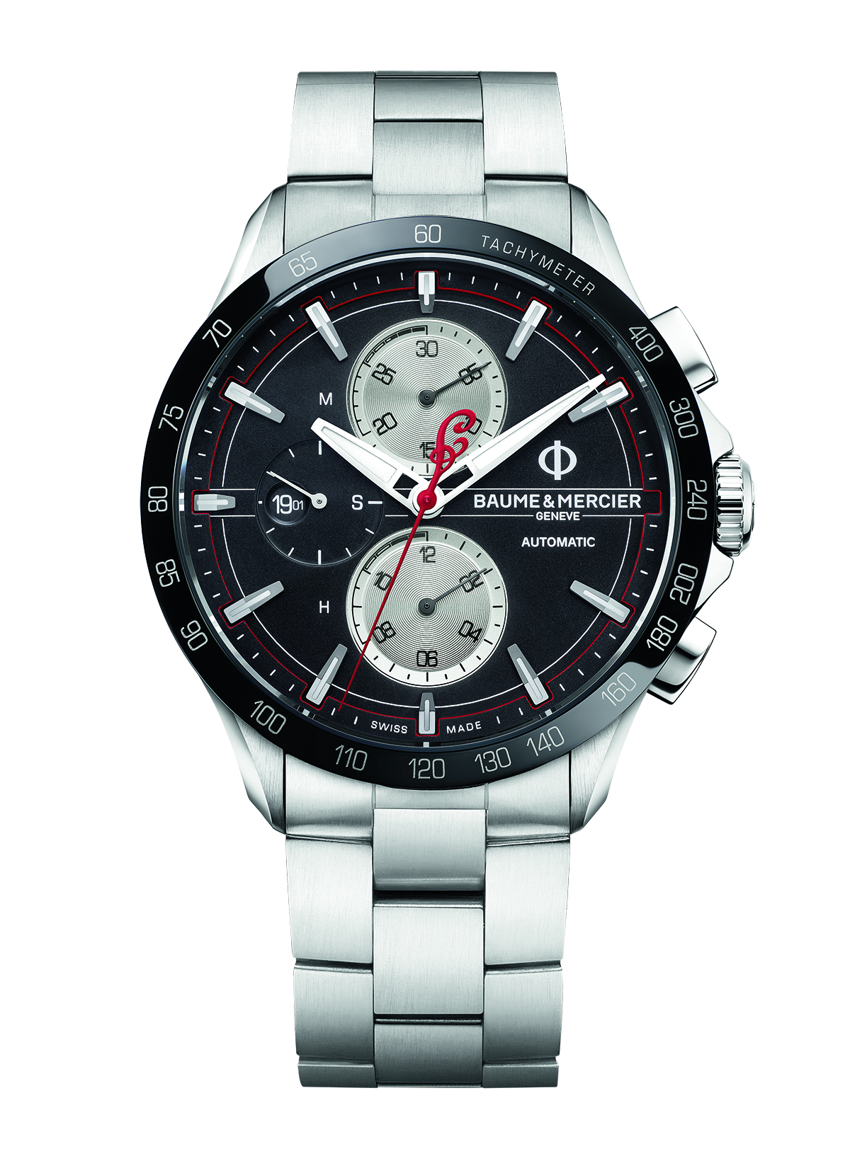 Dotato di scala tachimetrica, l’orologio è mosso dal calibro cronografico Valjoux 7750, movimento automatico che la Baume et Mercier usa solo per le sue creazioni più importanti. Protetto da un solido fondo cassa in acciaio INOX avvitato, il calibro Valjoux 7750 assolve egregiamente i suoi doveri in qualsiasi situazione. Perché è questo che si chiede ad un orologio “di fatica” come questo: lavorare in silenzio e con la massima precisione possibile.