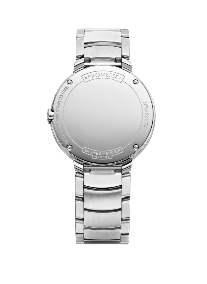 Robusto, bello ed elegante è anche il bracciale in acciaio INOX con chiusura tripla pieghevole e fermaglio di sicurezza. Una scelta perfetta per questo Baume et Mercier Promesse 10157 che, come il resto dei prodotti della collezione Promesse, è pensato per le donne che vogliono indossare al polso delle creazioni che possano suscitare emozioni, ricordi e passioni.