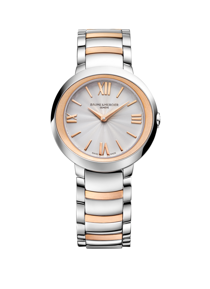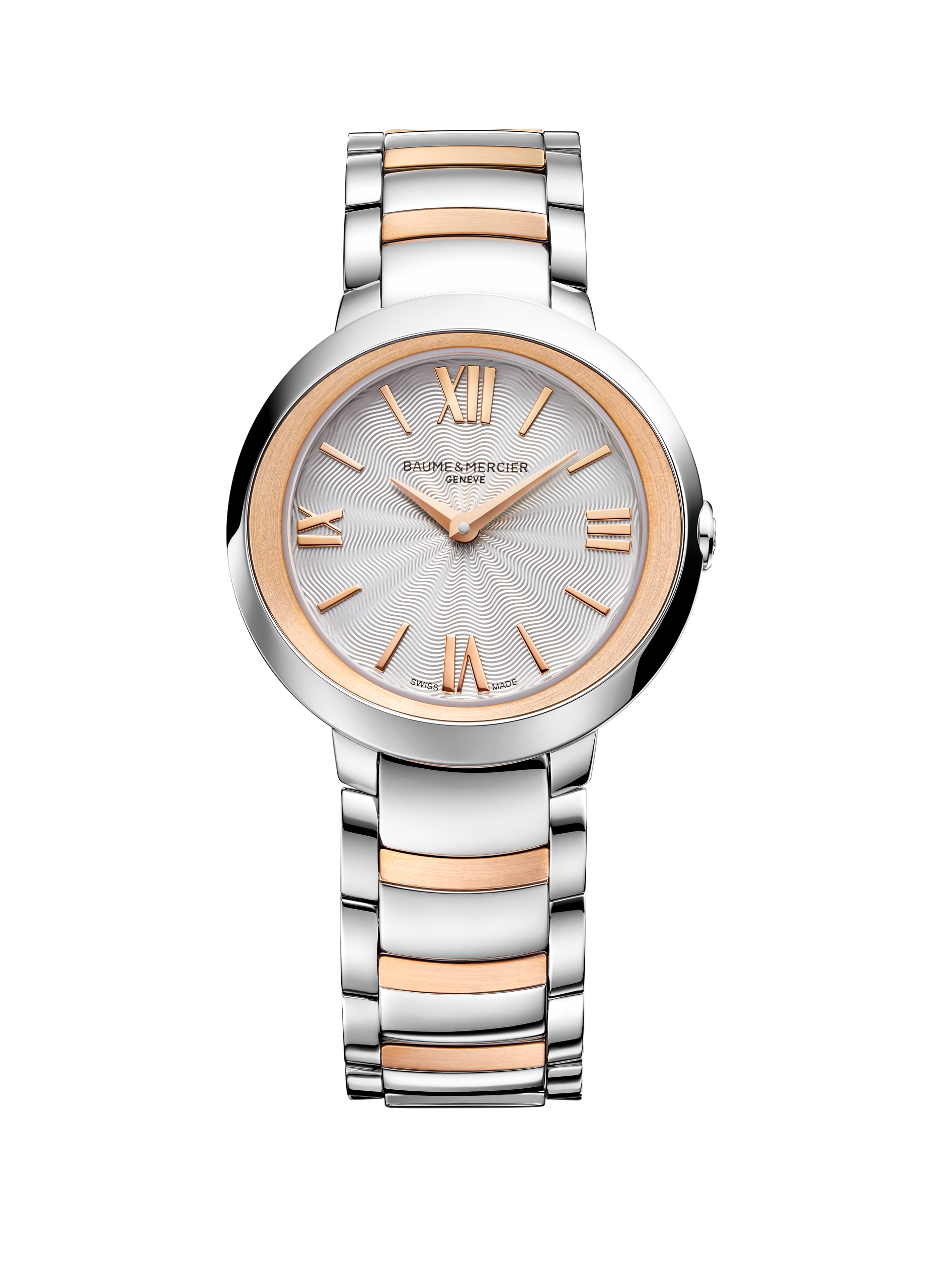 Partiamo dalla cassa, costruita in acciaio INOX bicolore argento/placcatura in oro rosso dal diametro 30 mm per 7,4 mm di profondità: di forma rotonda, la cassa è ovviamente antigraffio, resistente e lucida. La forma particolare, che ricorda molto gli orologi anni sessanta, è stata qui rimodellata dalla Baume et Mercier che l’ha resa più morbida e rotonda. Una scelta di classe per le donne che vogliono mostrare tutta la loro femminilità con grinta, decisione ed eleganza.