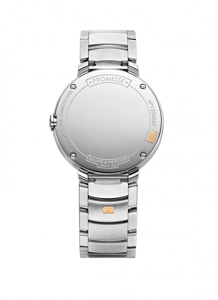 Robusto, bello ed elegante è anche il bracciale in acciaio INOX bicolore argento/placcatura oro rosso con chiusura tripla pieghevole e fermaglio di sicurezza. Una scelta perfetta per questo Baume et Mercier Promesse 10159 che, come il resto dei prodotti della collezione Promesse, è pensato per le donne che vogliono indossare al polso delle creazioni che possano suscitare emozioni, ricordi e passioni.