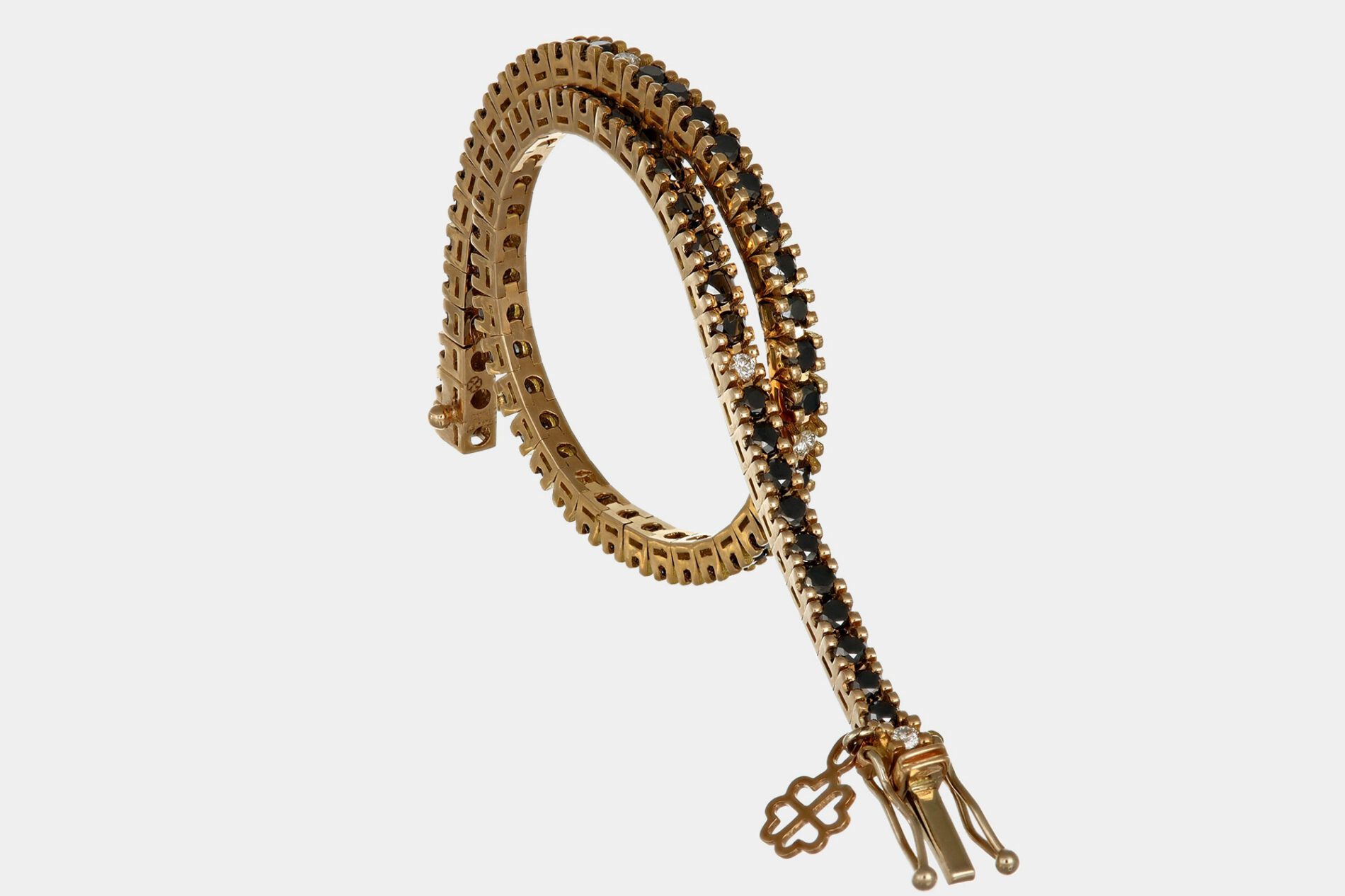 I bracciali tennis con diamanti neri sono quindi dei pezzi molto ricercati. Il gioiello qui proposto è realizzato infatti con dei diamanti neri dal colore molto intenso, mentre i diamanti bianchi rispettano al 100% i criteri di cui abbiamo parlato sul nostro sito vetrina.