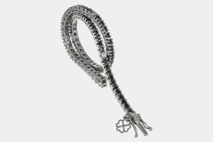Bellissimi e molto amati, i diamanti neri sono tra le gemme preferite dagli uomini (ma anche le donne non disdegnano di indossarli). Da abbinare a qualsiasi outfit, un bracciale con diamanti neri non passerà mai inosservato. Ed essendo arricchito con alcuni diamanti bianchi color F dalla purezza VS2, questo gioiello sarà sicuramente un dono prezioso per ogni gentleman moderno. O per una donna che ama indossare gioielli dal taglio più “deciso”!