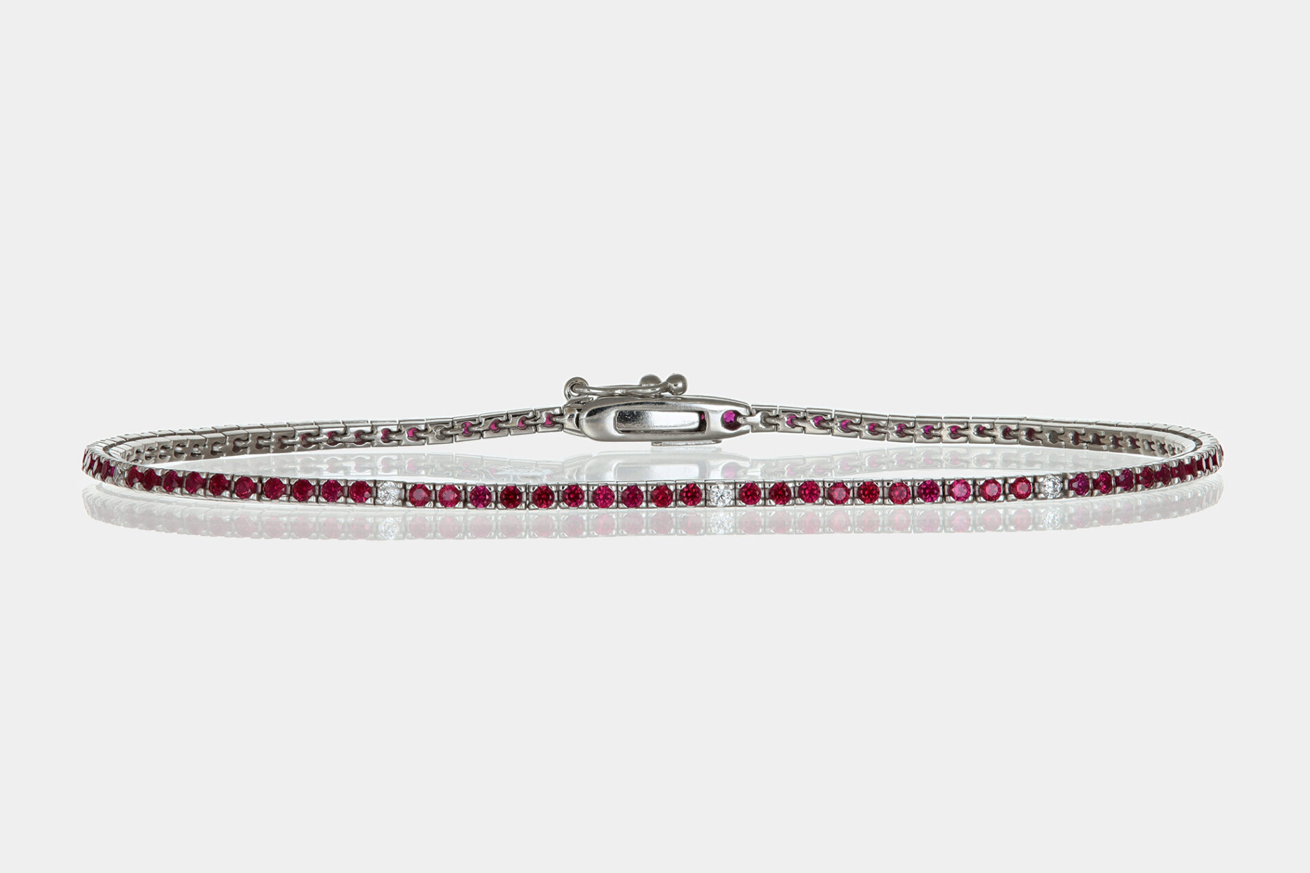 Bracciale tennis oro bianco donna con zirconi rossi – Acquisto sicuro e garantito