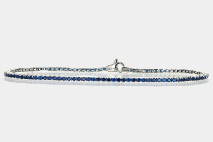 Bracciale tennis unisex oro bianco zirconi blu – Acquisto sicuro e garantito