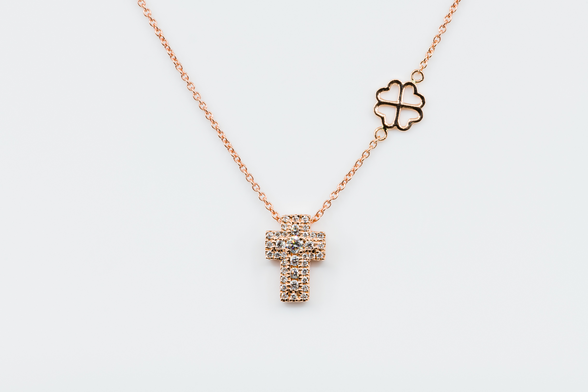 Collana croce Angelus rose diamanti – Una realizzazione semplice ma d’impatto