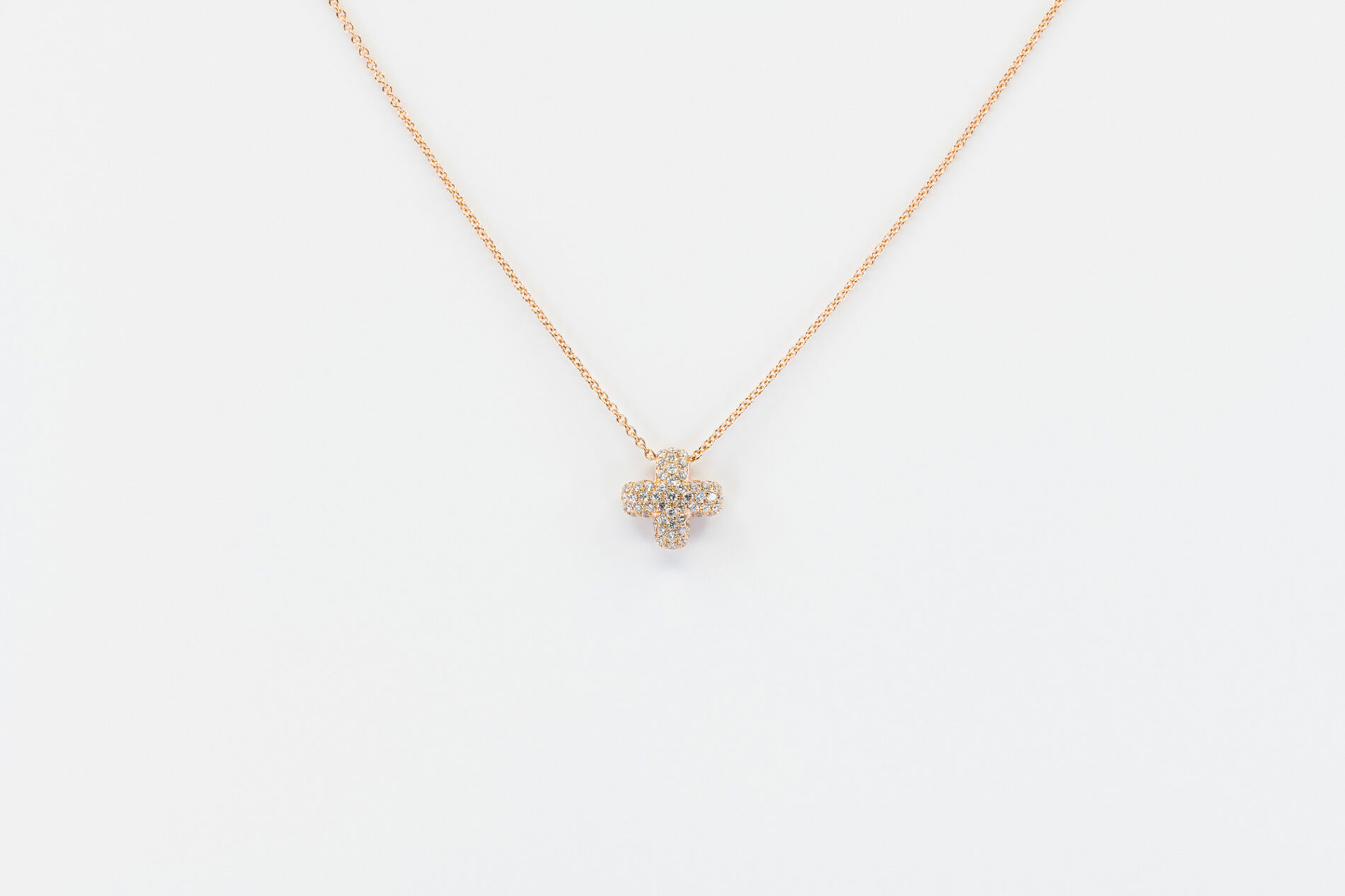 Collana croce Angelus Soft Small Rosé è una delle creazioni più innovative della Gioielleria Casavola di Noci (BA). Una collana in oro rosa e diamanti dal design unico ed inconfondibile, dalle linee morbide e delicate.