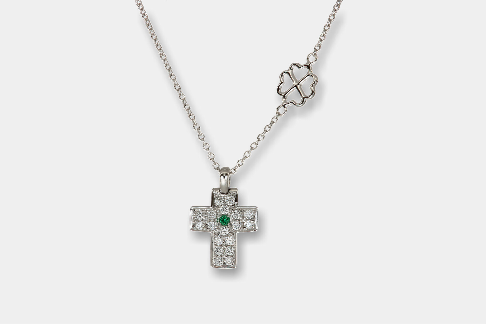 Collana croce diamanti e smeraldo Angelus White Light – Una realizzazione semplice ma d’impatto