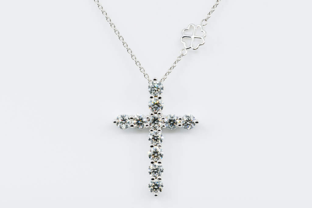 Collana Croce Fidelis diamanti bianchi è una delle nuove creazioni della Gioielleria Casavola di Noci (BA). Una collana in oro dalle caratteristiche uniche, frutto del lavoro dei gemmologi Dario e Fabio Casavola.