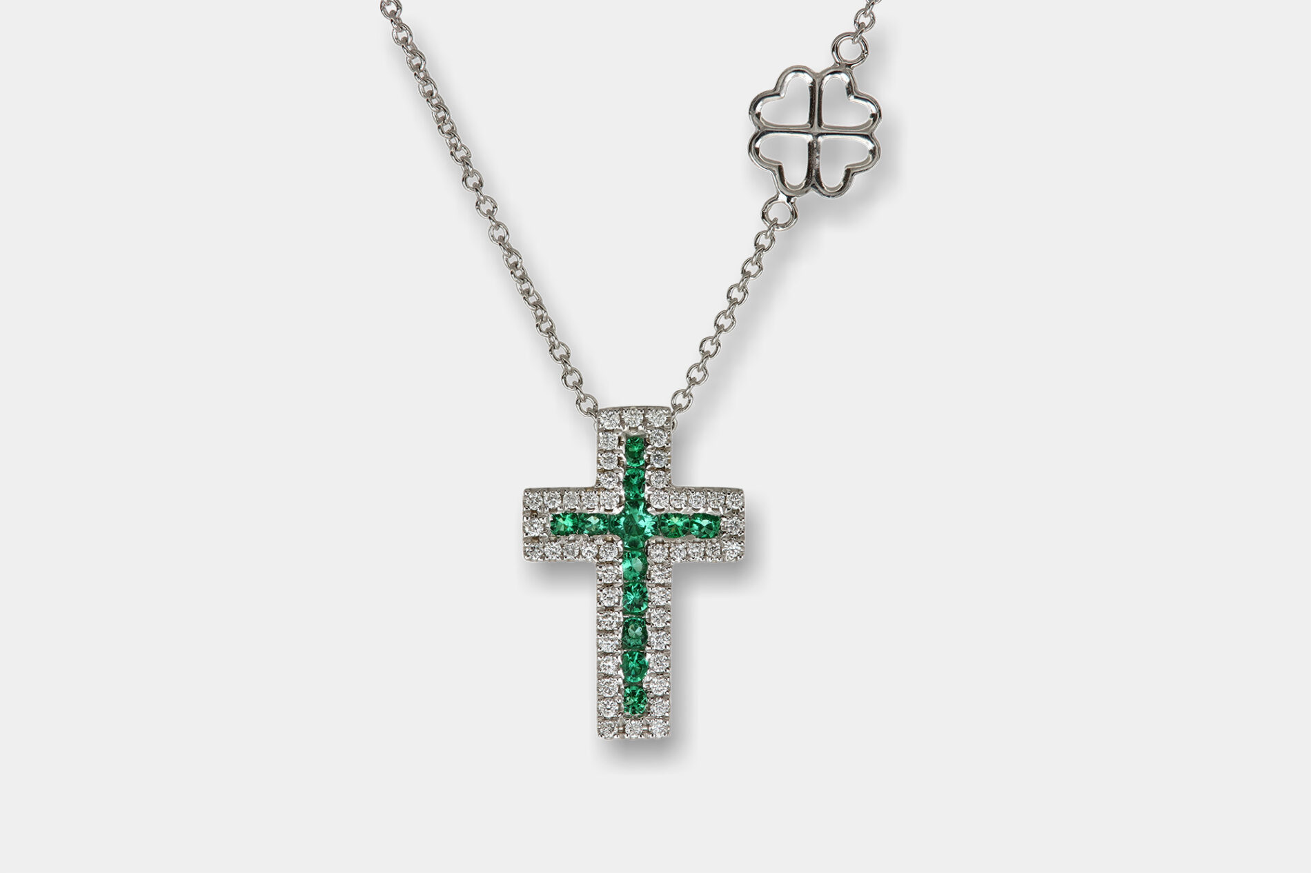 Collana croce Grand Angelus smeraldi White – Una realizzazione semplice ma d’impatto