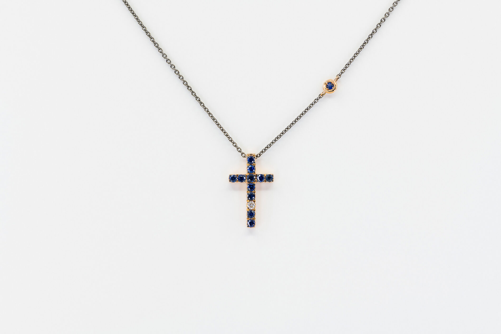 Collana croce zaffiri Angelus Auctus Rosé – Una realizzazione semplice ma d’impatto