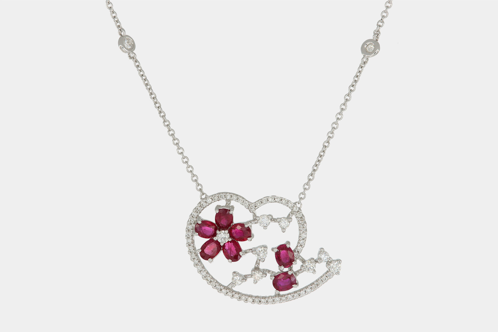 Collana cuore con fiore in rubini Nature White – Un mondo di luci e di colore