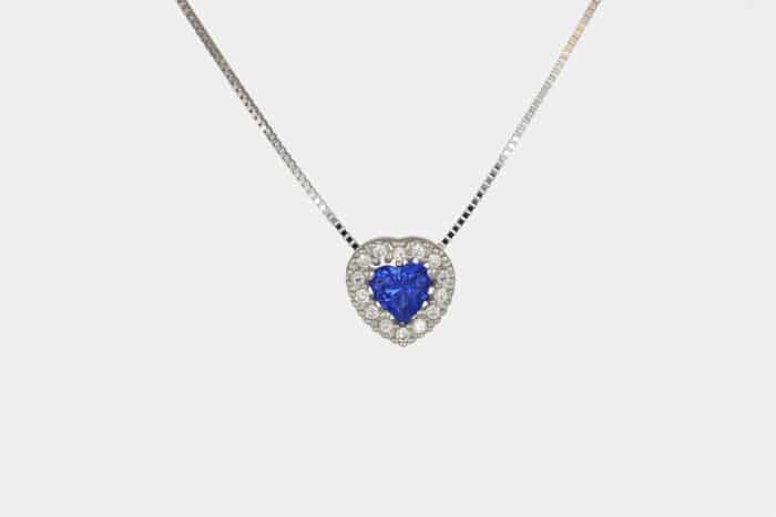 Collana cuore oro bianco zircone blu – Acquisto sicuro e garantito