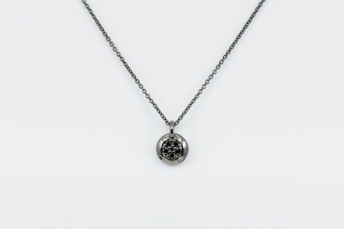 Collana punto luce con pavé di diamanti neri da uomo modello Lil Round realizzata dalla Gioielleria Casavola di Noci (BA).