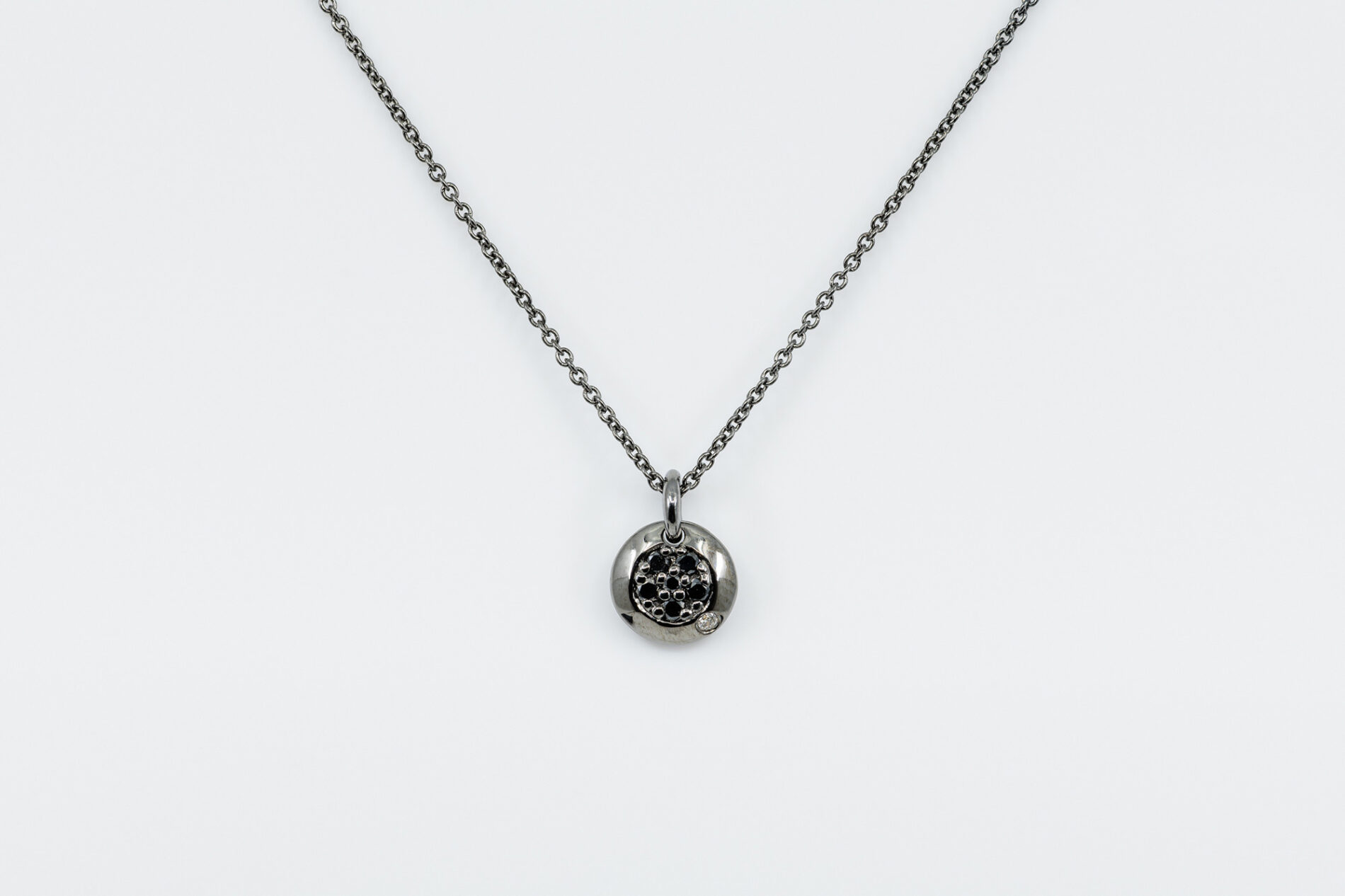 Collana punto luce pavé diamanti neri Lil Round - Gioielleria Casavola di Noci - idee regalo compleanno fidanzato 25 anni - oro nero