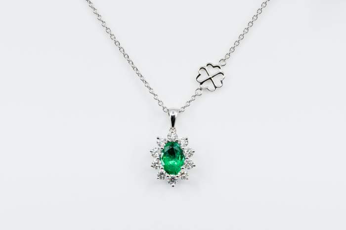 Collana smeraldo Sunflower Nature è un gioiello ispirato alle forme ed ai colori della natura. Una collana in oro bianco su cui spicca un bellissimo smeraldo taglio ovale. Un gioiello con pendente dalle caratteristiche uniche ed inconfondibili. Un’opera della Gioielleria Casavola di Noci (BA).