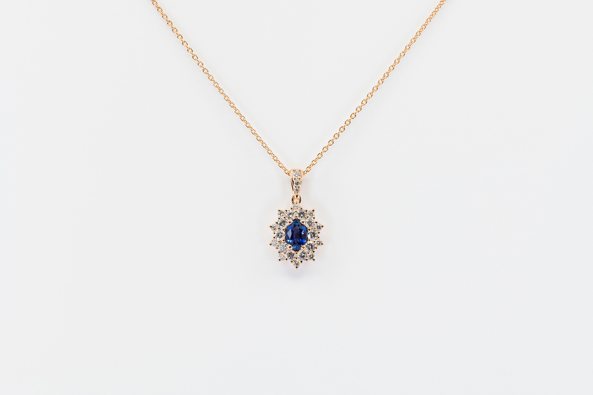 Collana zaffiro Star Anise Nature Rosè è un gioiello ispirato alle forme ed ai colori della natura. Una collana interamente in oro rosa su cui spicca un bellissimo zaffiro taglio ovale con pavé di diamanti. Un gioiello dalle caratteristiche uniche ed inconfondibili. Un’opera della Gioielleria Casavola di Noci (BA).