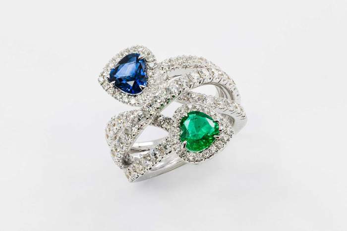 Crivelli anello contrarie smeraldo e zaffiro cuore pavé – Bruno Crivelli e le sue opere di alta gioielleria
