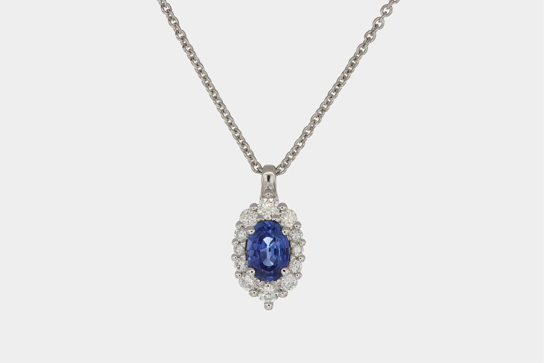 Collana con zaffiro taglio ovale e pavé di diamanti by Crivelli