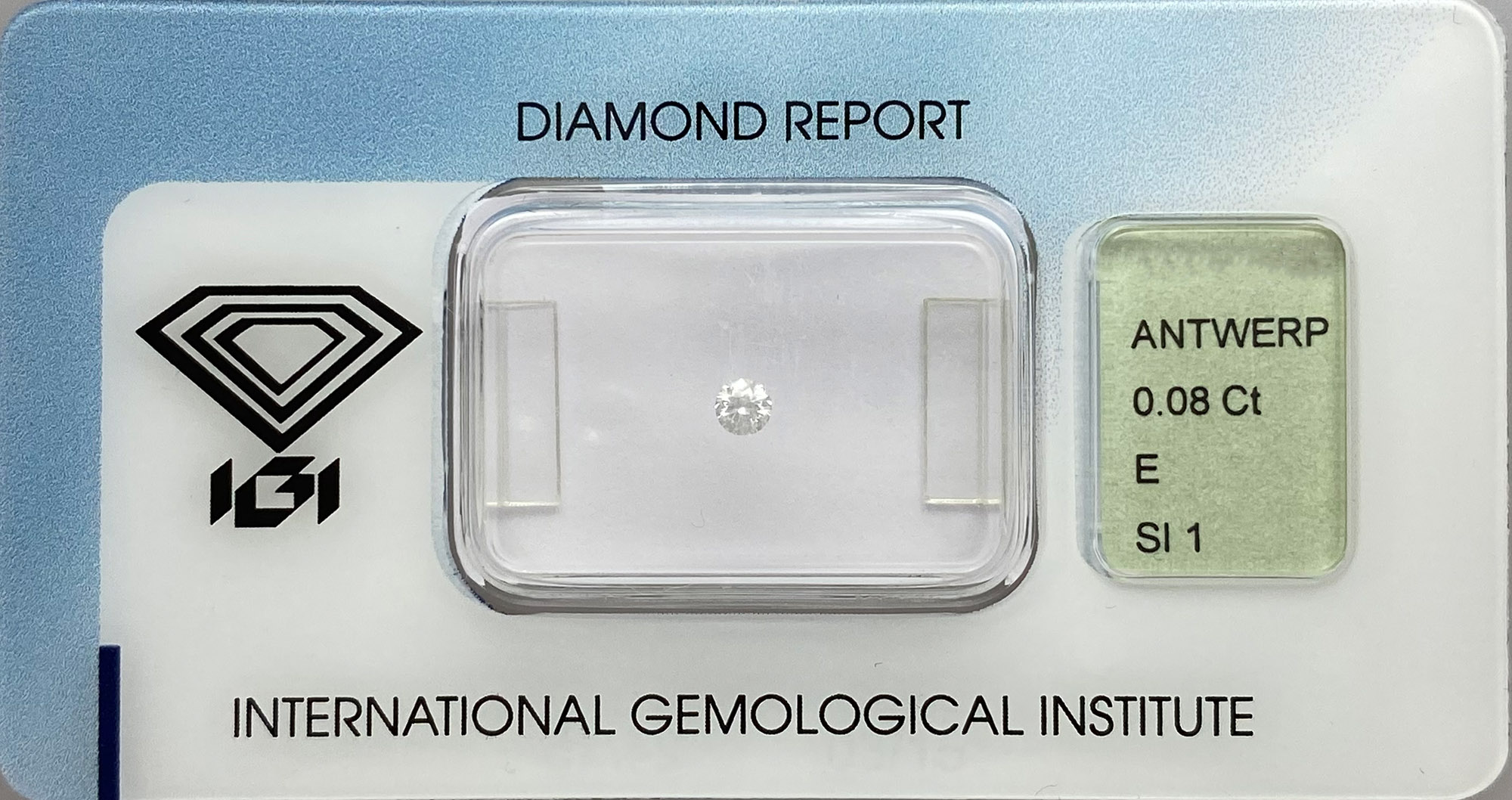 Diamante certificato IGI 0.08ct E Si1 – Acquistate in tutta sicurezza