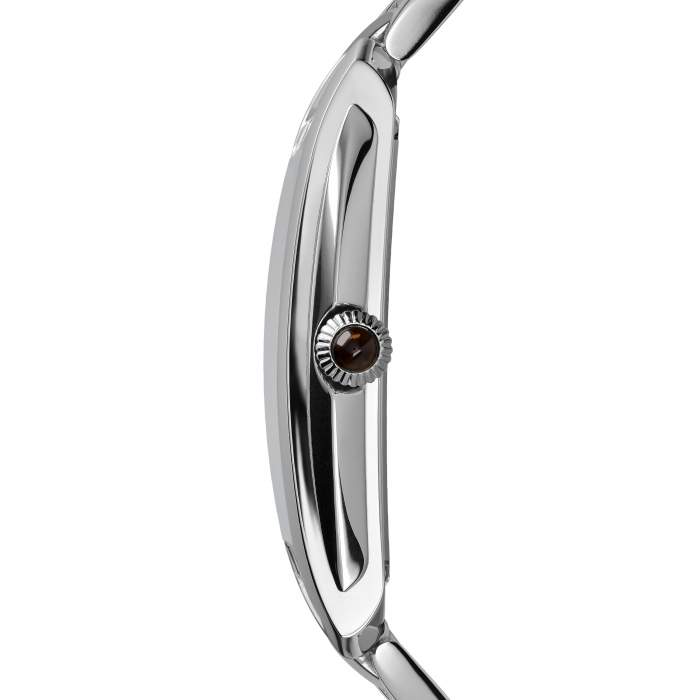 L’Emporio Armani Swiss Made ARS8350 ĆØ esattamente questo. Dal diametro di 48,3mm x 32,40mm per uno spessore di 9mm, la cassa forma rettangolare ha una misura che si adatta perfettamente a qualsiasi polso. Uno standard di vestibilitĆ molto gradito. Ed il colore metallizzato dell’acciaio INOX in cui ĆØ realizzata ne esalta la bellezza.