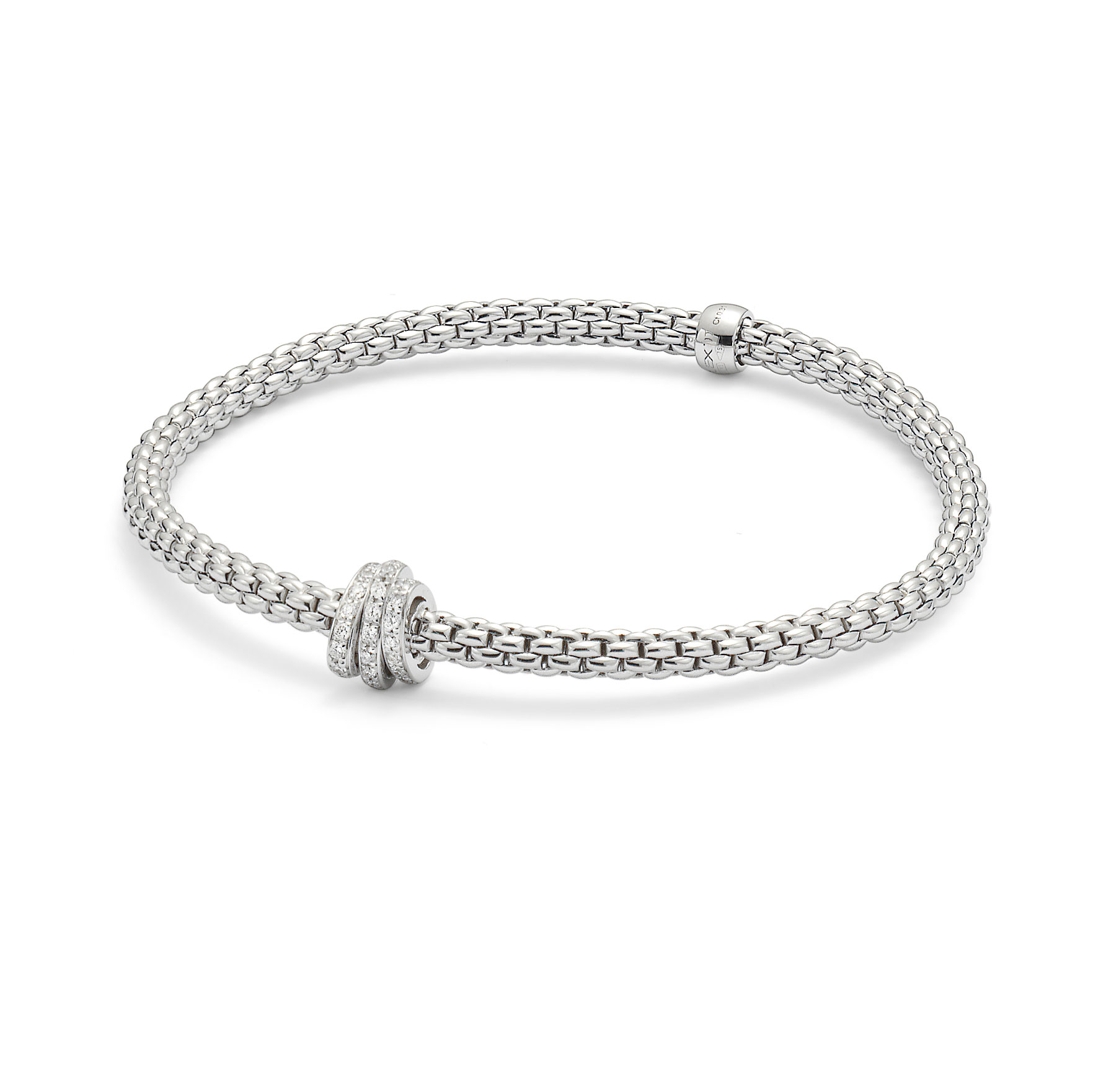 Fope bracciale Flex it Prima oro bianco 744B fa parte di una delle bellissime collezioni di Fope. Ed è una linea di gioielli molto, molto importante per Fope.