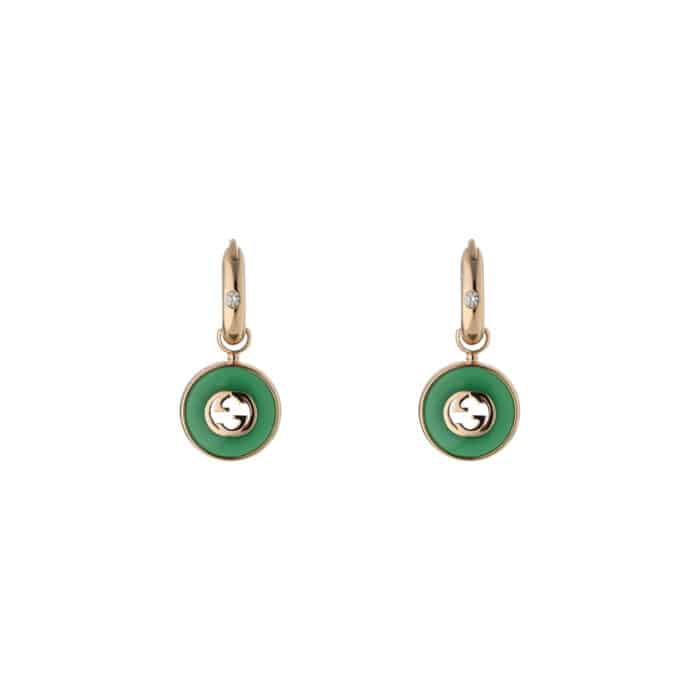 • Gucci Interlocking orecchini in oro rosa 18 carati con agata verde.