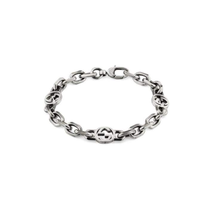 Gucci bracciale Interlocking G con motivo Doppia G in argento anticato YBA620798001.