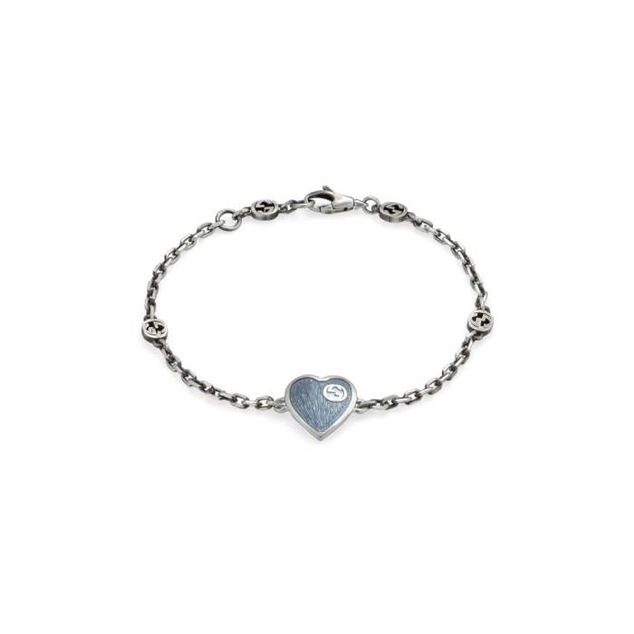 Gucci bracciale con cuore smaltato blu Interlocking G in argento 925 YBA645546002.