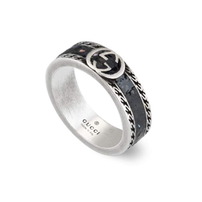 Gucci anello fascia Interlocking G in argento con smalto color graniglia YBC645573002.