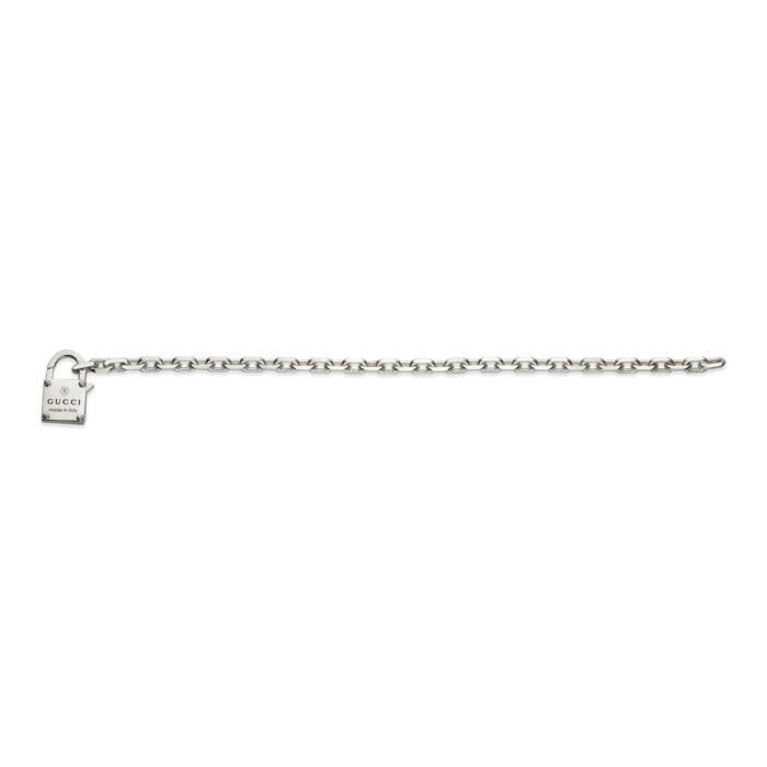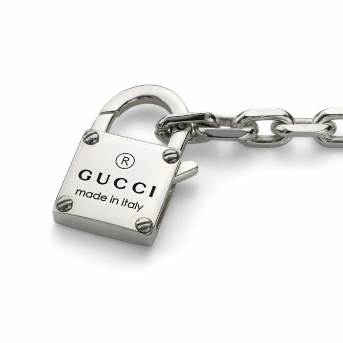 • Pendente a forma di lucchetto con incisione Gucci Trademark.