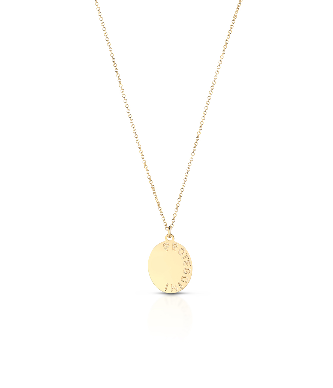 Sul retro di ogni ciondolo è incisa inoltre la scritta “Proteggimi”. Che qui assume la doppia valenza di nome della collezione e di buon augurio.